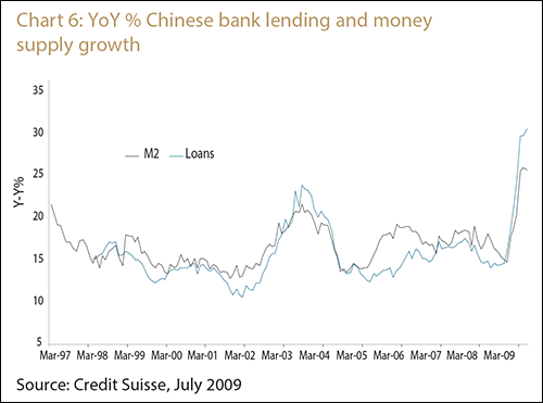 With (according to recent surveys) investor enthusiasm for all things Chinese at an all time high, it seems almost heretical to challenge Chinese stock market hegemony. Yet it seems somewhat at odds with this secular growth narrative that China has been the recipient of the biggest fiscal and monetary stimulus: its government is spending $266bn or 6.1% GDP and its banks are increasing lending by 30% year-on-year (Chart 6). Economies where money supply (M2) is increasing at rates of more than 25% don’t normally have happy endings. With over-capacity in most Chinese industries, there are already signs that this stimulus is leading to a speculative bubble in property and stockpiling of commodities such as copper and iron ore. It is also difficult to see how Chinese infrastructure spend can do anything other than decelerate from its current 50% year-on-year growth rate, particularly as infrastructure spend by local governments away from the prosperous Eastern Seaboard (where there is more potential for new projects) is now significantly in excess of local tax revenues. It has been fun, but China is unlikely to give us a positive surprise from here.
