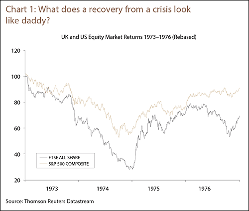 After a severe bear market it is normal that investors have less money to invest and are more concerned about the preservation of what remains of their wealth. This potentially leads to a mentality where volatile assets are shunned whatever their price. While there is an abundance of financial history written on how rising prices de-sensitise investors to value – investment manias - there is relatively little analysis of how this process works in reverse when value is ignored because of painful memories of losses. Understanding how psychology in economic crises creates investment opportunities for the recovery is as important as any understanding of what caused the crisis in the first place. Whilst economic crisis will be very familiar to those emerging markets investors who remember that the 1990s was rather less kind to their asset class, stock-market operators in developed markets with experience of what an economic crisis (as opposed to events such as the internet bubble of 2000 or the “Crash” of 1987 which had relatively little impact on the real economy) looks like in stock-market terms are now either retired or dead. The last developed world economic crisis, when governments and central banks lost any semblance of control over the economy was more than three decades ago in the early 1970s.