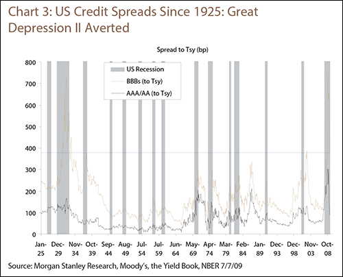 Bears will complain that this will be “low-quality” economic growth based on one-off inventory re-build, but just as the one-off nature of the inventory liquidation over the last year has been very real in its impact on industrial production and unemployment, so bringing inventories back to more normalised levels cannot be dismissed as just some kind of statistical event with no meaningful impact on the real economy. Those who dismiss the possibility of economic recovery are also ignoring the positive feedback loop that financial markets can generate for the real economy. As asset prices continue to recover, banks can have more confidence that their capital bases are sufficient to cover likely bad assets. This should diminish the urgency for banks to de-lever their balance sheets and should engender a less risk adverse attitude to new lending. This is how the vicious circle of credit availability and economic activity seen in 2008 can now turn virtuous.
