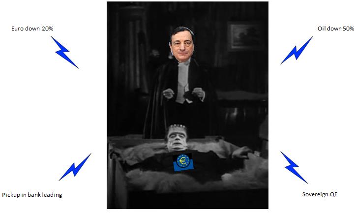 Unprecedented stimulus in the Eurozone – sovereign QE, negative deposit rates, depreciating Euro and cheaper oil – is having a positive effect not just on asset prices but also on underlying economic growth. Economic lead indicators in Europe bottomed in October 2014 and have been recovering steadily since, with the biggest improvement witnessed in Italy, hitherto the only peripheral economy not to have already exited a multi-year recession. With the caveat that there have already been several false dawns, this is a welcome development for European equity investors: we should begin to see a return to meaningful corporate profit growth, not just amongst European exporters benefitting from translating foreign profits back into Euros, but also amongst companies geared to the pick-up in the domestic European economy. As such, if Mario Draghi is Frankenstein and the Eurozone economy, Frankenstein’s monster, then Mario’s monster has come to life.