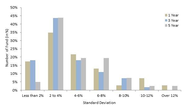Figure 4: “Targeted Absolute Return sector range of fund volatility characteristics” - Standard Deviation of funds in the Targeted Absolute Return Sector