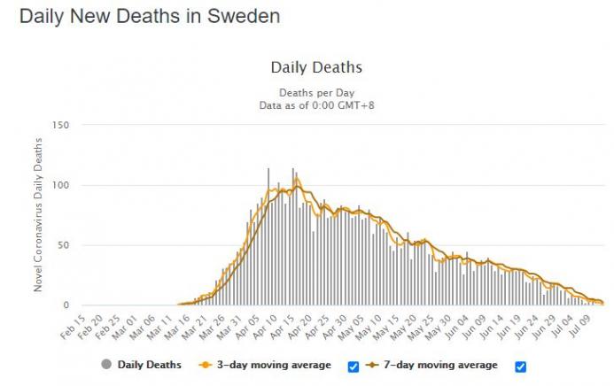 Subsequently, a range of scientific studies have now shown that government actions had no statistically significant reductions in the number of critical cases or overall mortality.66 67 Given the economic catastrophe, social breakdown and neglect of non-COVID healthcare this was a devastating policy error. When by July (Fig. 9) the virus had all but disappeared from Sweden there was no positive acknowledgement from other governments which had implemented lockdown and no reporting from their lapdogs in the media. Just silence.
