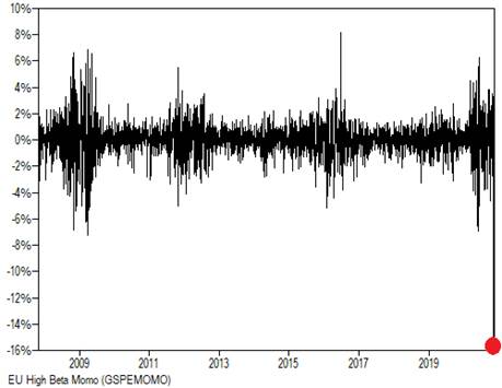 - Monday’s move -16% for the style beta (-22% in the US) was the biggest on record (in 11 years)