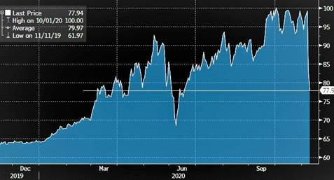 The chances of significant US fiscal stimulus has also been significantly diminished by the failure of the Democrats to capture the Senate as expected (and ironically positive news of the forthcoming vaccine). So the chances that the global economy remains stuck in lockdown induced recessions remains high despite a vaccine being approved and 12 months is a long time to wait for evidence of normalisation in cash-burning industries.