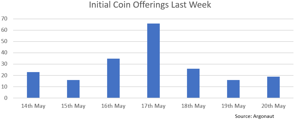 Crypto is in fact so easy to produce that almost anyone can have a go at “free money”: last week alone there were over 200 new “Initial Coin Offerings” (Fig 2. Initial Coin Offerings Last Week). Nearly all fail, mostly quickly as their sponsors run off with the cash raised, with retail investors vulnerable to the lure of stories of overnight fortunes.5 The crypto industry remains almost completely unregulated: there is almost a complete absence of Anti-Money Laundering (AML) and Know Your Customer (KYC) regulations; rules on capital raises of new cryptocurrencies are almost non-existent compared to conventional capital markets.6 This is Wildcat Money.