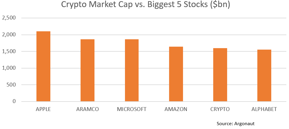Fig 3. Crypto Market Cap vs. Biggest 5 Stocks8