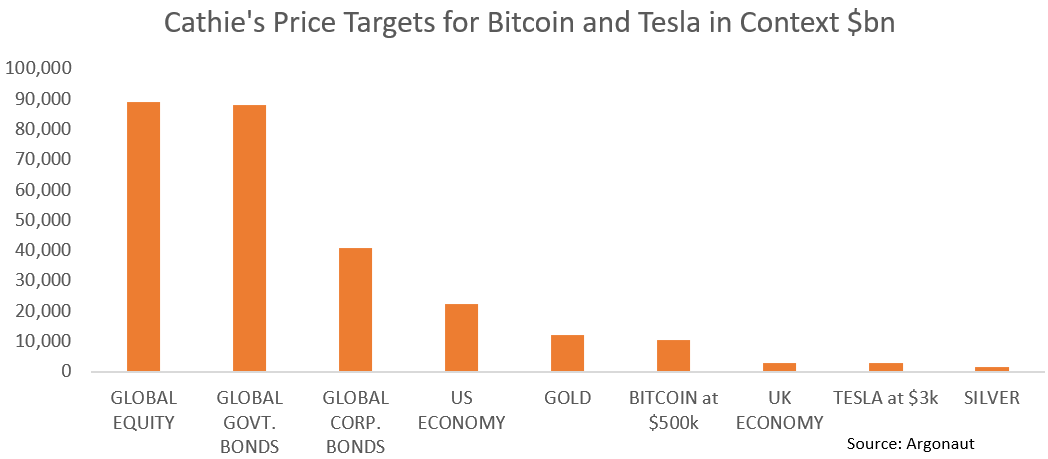 Fig 6. Cathie’s Price Targets for Bitcoin and Tesla in Context