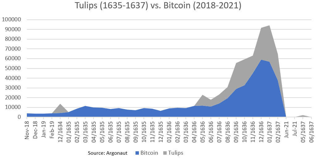 The investment craze in bitcoin (2018-21) has often been compared to previous speculative bubbles such as the Dutch Tulipmania (1635-37), itself coincidental to a pandemic and lasting only a matter of months (See Fig 7. Tulipmania vs. Bitcoinmania) According to Nout Wellink, former President of Dutch Central Bank, “This is worse than the tulip mania. At least you got a tulip, now you get nothing”.25 Whilst the crypto bubble may have already burst, the systematic consequences of unregulated Wildcat Money are yet to be seen.