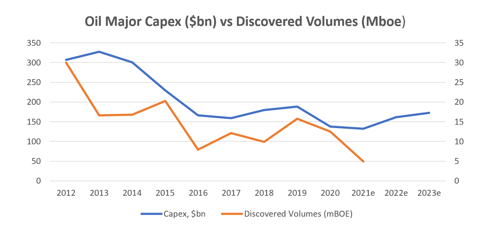 Fig 3. Oil Major Capex vs. Discovered Volumes