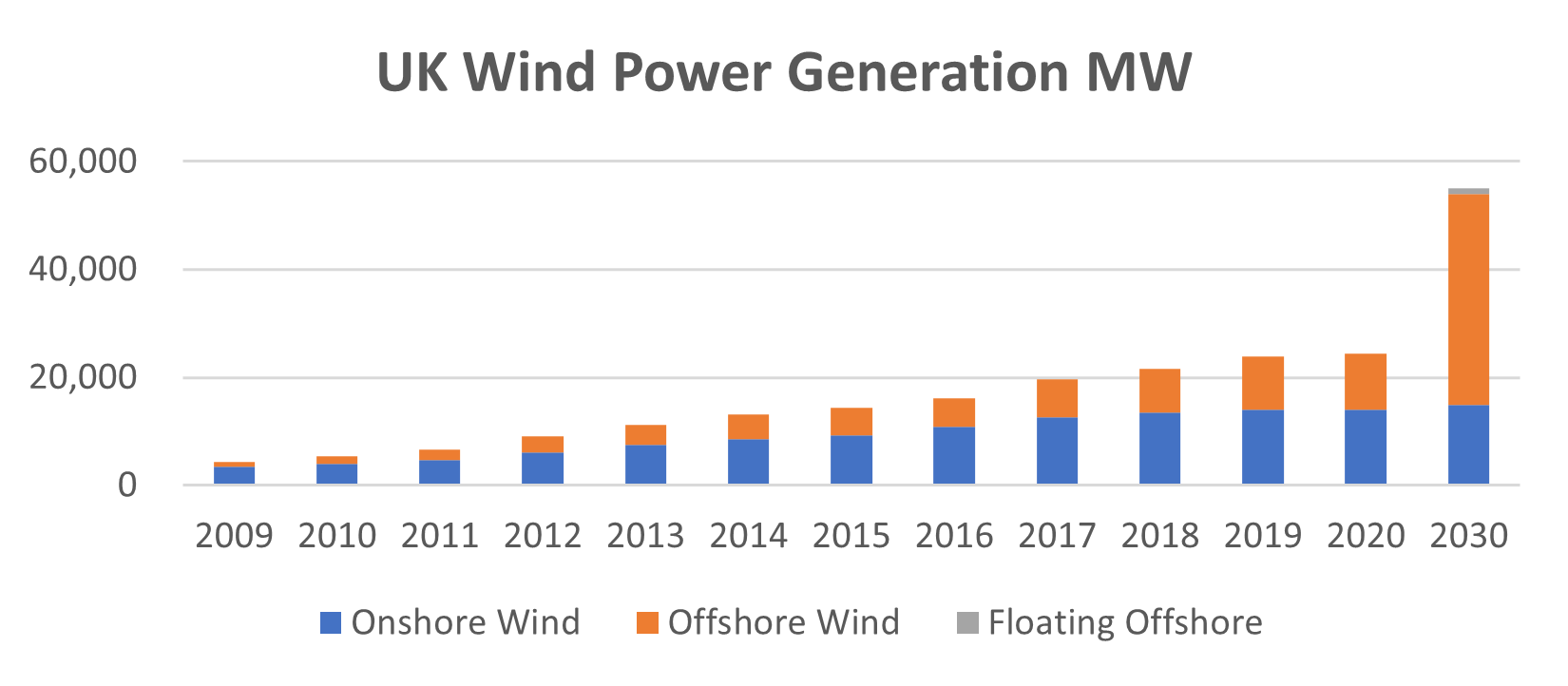 Fig 4. UK Wind Power Generation MW (2009 to 2030E)14