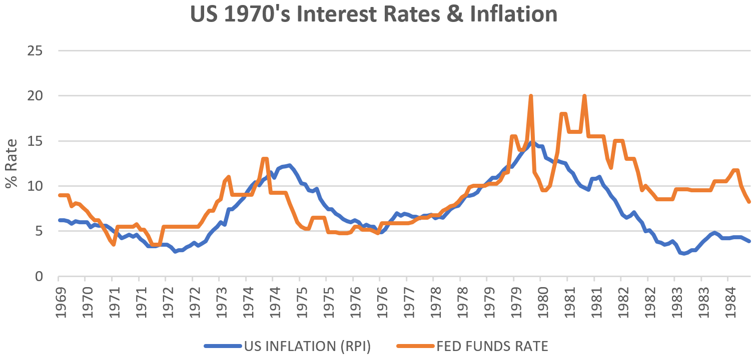 Fig 1: US 1970’s Interest Rates & Inflation