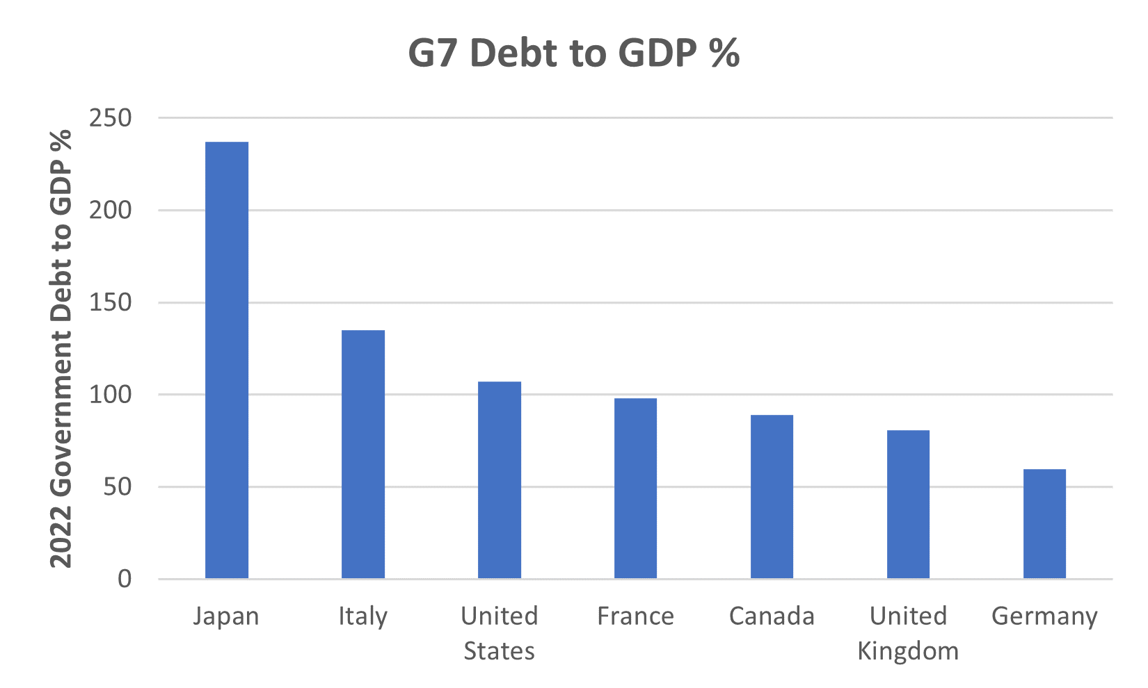Some commentators have also suggested that UK debt has a solvency risk. In fact, the UK currently has the second lowest Debt/GDP ratio in the G7, which is now expected to peak at 95% rather than 85% previously, which is still below Japan, Italy, the United States and France Unlike Italy, France, and Germany it also borrows in its own currency, which it can print (See Fig 3: G7 Debt to GDP %3). Suggesting that the UK government might default on interest payments on sterling dominated debt is for the birds.