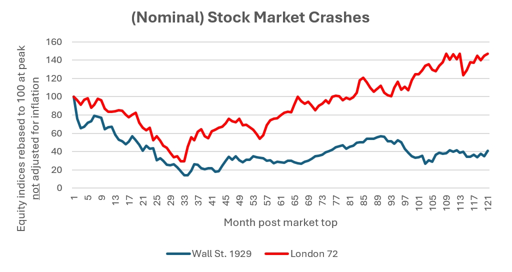 It is a little-known fact that if you had been unlucky enough to buy the UK stock market at its peak in 1972, your real return over the subsequent decade would have been worse than buying US stocks just before the Wall Street crash in 1929.
