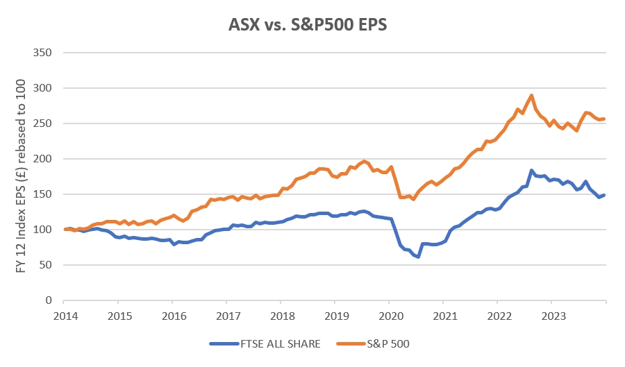 Fig 2: FTSE All Share Vs. S&P500 FY12 EPS (in £ terms)