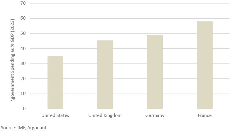 Inspired by the “chainsaw deregulation” of Argentina, where President Milei has cut government spending in real terms by one third in just 12 months, the new Department of Government Efficiency will, according to Elon Musk, target $2 trillion (7% of GDP) of US federal government budget cuts (though this figure has subsequently been pared back to an initial $500bn).